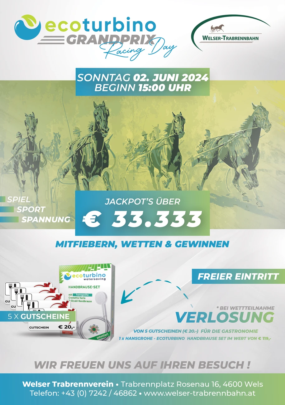 Erhöhte Gewinnchancen beim Wetten, viele Gewinnspiele sowie ein familienfreundliches Kinderprogramm erwartet die Gäste der Welser Trabrennbahn.