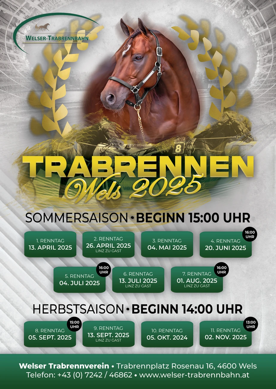 Der Welser Trabrennverein eröffnet am Sonntag - 13. April 2025 um 15:00 Uhr - mit dem ersten Renntag die Sommersaison.